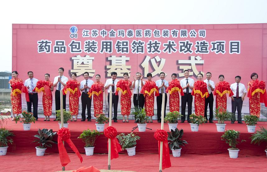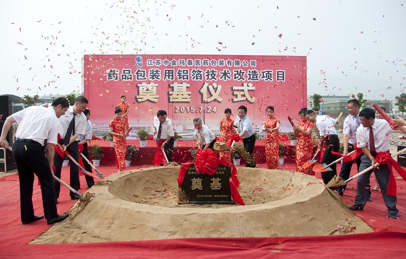 2015年7月24日,江蘇中金瑪泰醫(yī)藥包裝有限公司藥用包裝鋁箔技改項目奠基儀式在新廠區(qū)舉行,這標志著新工廠技改項目的建設正式拉開了帷幕。