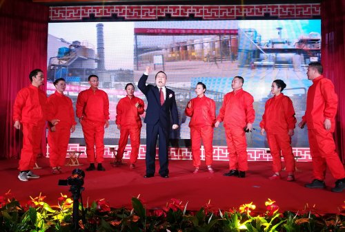 年會伊始,櫻井董事長首先發表新年致辭。他充分肯定了中金瑪泰2017年所取得的良好業績,并代表經營層對中金瑪泰全體員工一年來的辛苦付出表示衷心的感謝!他說,2017年,由于受原材料價格大幅上漲及國家對環境監管日益嚴格的影響,企業面臨著異常嚴峻的經營形勢。但在公司經營層及全體員工的共同努力下,公司仍實現了產量和銷售額的持續穩定增長。新的一年,他希望全體員工要在確保企業安全生產的條件下,通過各團隊的共同努力,攜手并進,為保持中金瑪泰在行業中的領先地位而不懈努力!