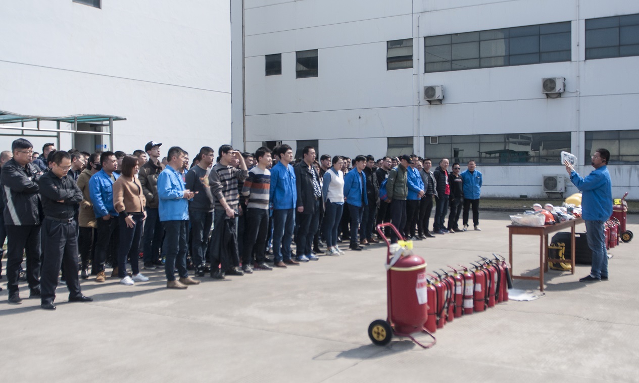 培訓課程結束后,公司安全科長楊正濤在廠區演練場地就滅火器材及防護裝備的使用進行了現場的示范與講解,對初起火災撲救方法以及火災發生后如何報火警、如何安全疏散和自救逃生等安全常識進行了詳細的解說,參訓人員對手持式滅火器、滅火毯等進行了實際操作演練。在隨后的各工廠應急演練疏散過程中,當消防警報突然響起,各區域安全負責人立即組織本區域人員井然有序地按照規定疏散路線,迅速撤離現場,到達指定地點集合,出色的完成了疏散逃生演練。