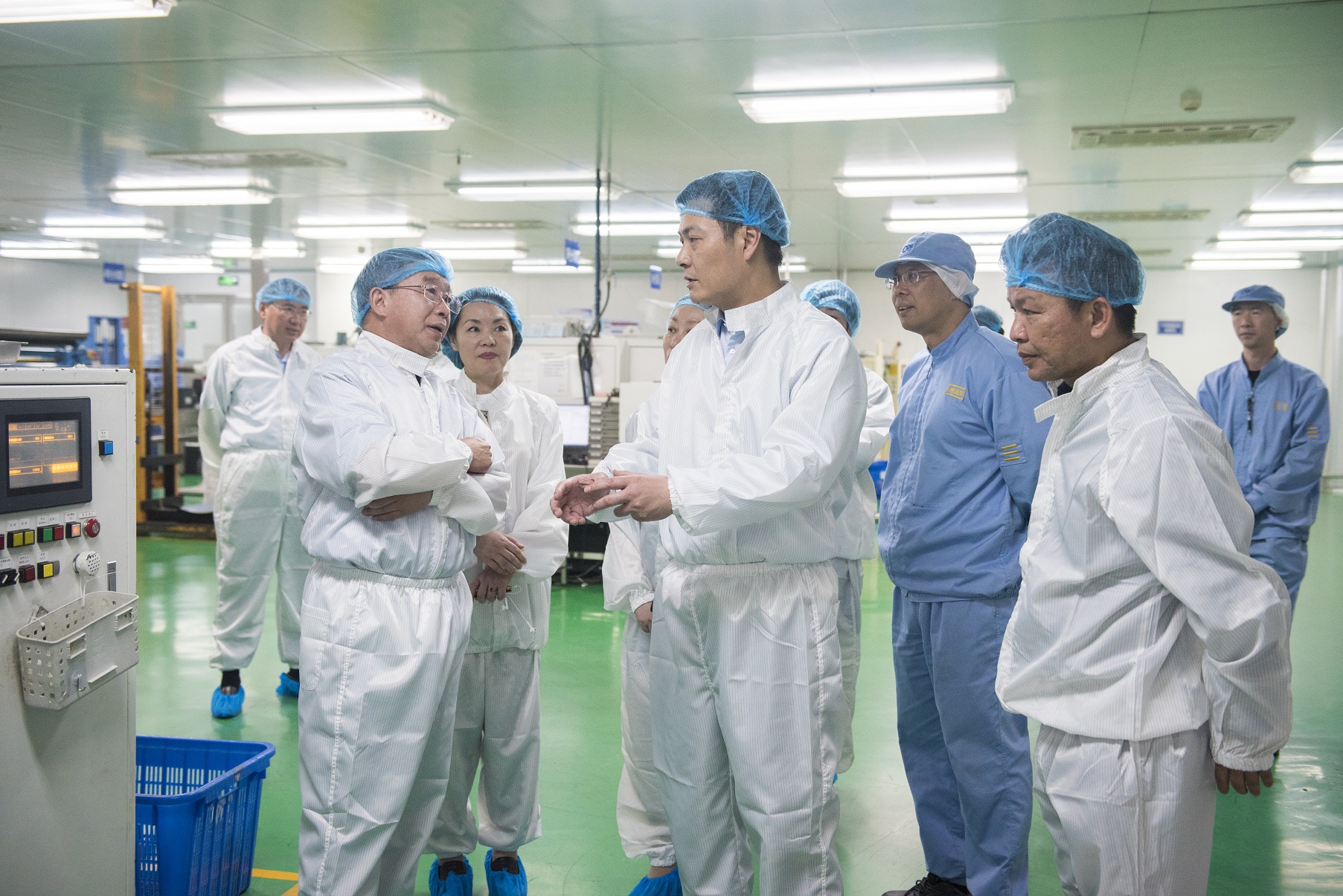 魏愛春一行來到中金瑪泰SP生產(chǎn)車間實(shí)地考察了企業(yè)的生產(chǎn)運(yùn)行情況。調(diào)研中,徐總就企業(yè)的發(fā)展概況、產(chǎn)品銷售、設(shè)備及環(huán)保投入、技術(shù)研發(fā)等內(nèi)容作了詳細(xì)的介紹與匯報(bào)。